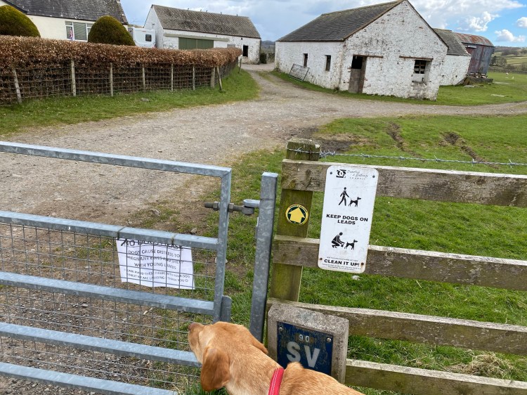 “Couldn’t you have chosen a different path,” he demanded to know. “I didn’t know that this was no longer a public path; are we locked in now” I responded. He showed me that the gate wasn’t really locked. His dog was barking and growling at us and the farmer wasn’t doing much to restrain him.