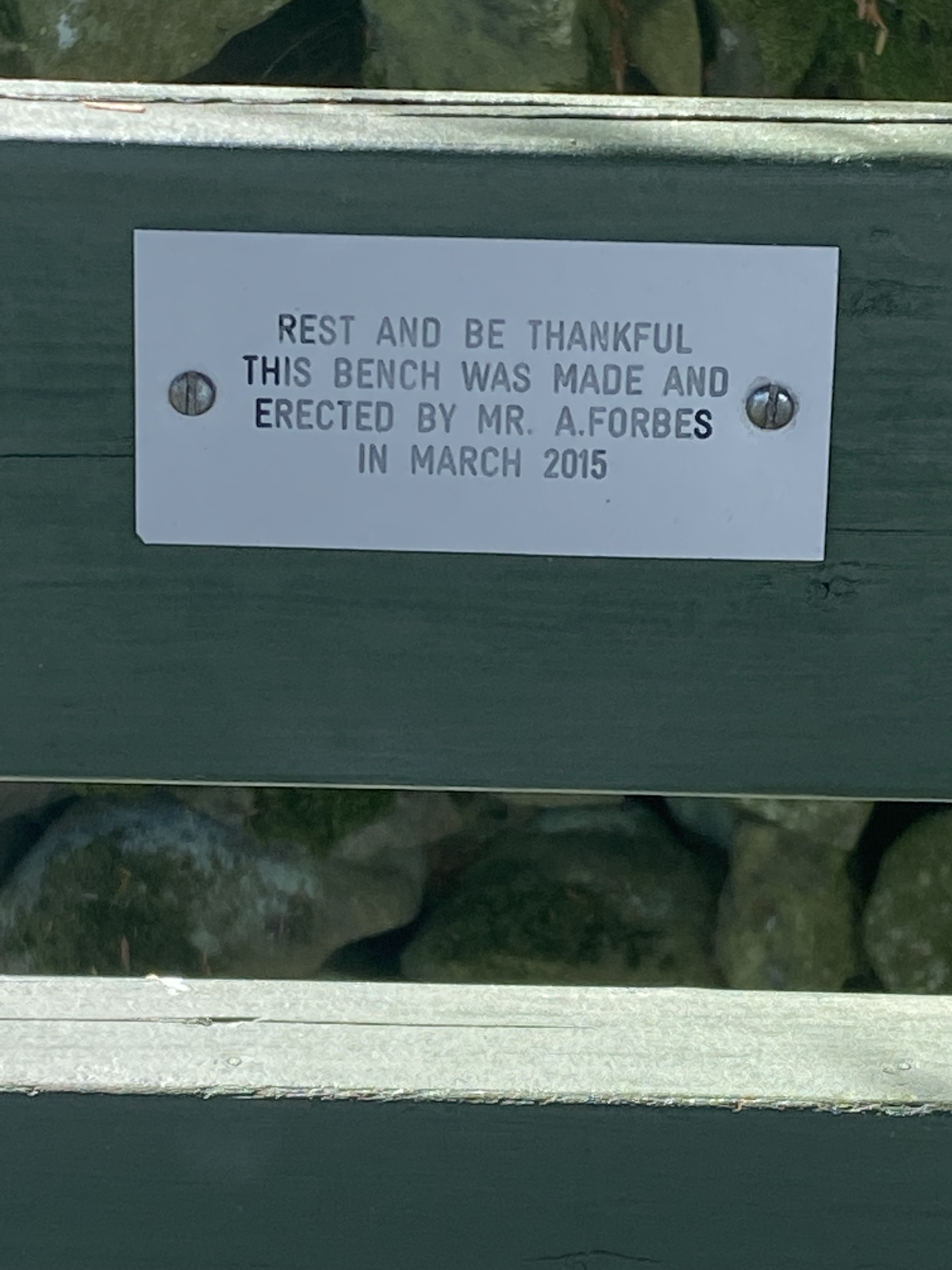 Nearly every weekday at lunch time, I take a 2.5 km walk up to a bench near Caitloch. The bench (pictured above) says to “rest and be thankful.” I made it a routine to rest on the bench (unless it’s wet) and think of three things that make me thankful. It helps me to refocus on the positive and gives me a boost for my return trip and the rest of the day.